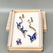 幸せを運ぶとされる伝説のあるヘレナモルフォ蝶が耳元でひときわ輝く存在感を放ちます。大切な日のアクセントにぴったりの逸品です。