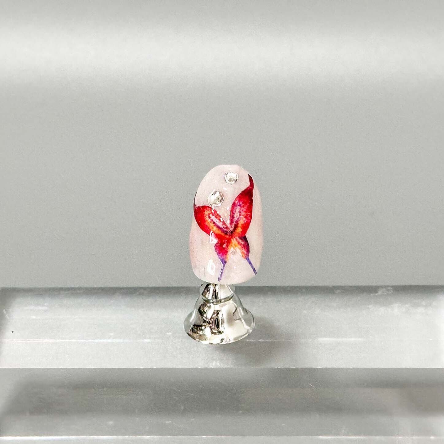 耳元でひときわ輝くレッド蝶は、華やかなスタイルからシンプルな装いまで幅広くマッチ。さらに親指用付け爪を合わせることで、ワンランク上のおしゃれをお楽しみいただけます。