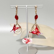 このレッド蝶のスワロスキーイヤリングは、個性的で美しいデザインが特徴で、スワロスキーイヤリングに蝶が飛んでいるように留まらせているので、揺れるたびにどこか幻想的でありながらも洗練された印象を与えます。